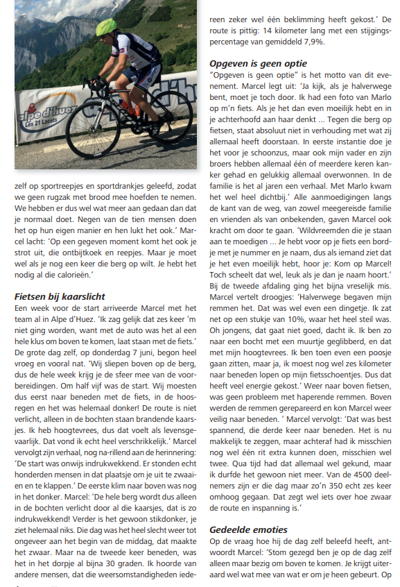Interviews afnemen en vervolgens uitwerken tot een pakkend artikel of commercial story? Geen probleem. Ik heb zo’n 3 jaar bij een regionaal maandblad gewerkt, waarbij ik de kans kreeg om veel bijzondere en indrukwekkende verhalen te mogen vertellen van mensen uit de regio. De ene keer over vrijwilligers die al jaren stilletjes actief bleken te zijn en het verdienden om eens goed in het zonnetje gezet te worden. De andere keer een lokale ondernemer die om persoonlijke redenen een loodzware, sportieve uitdaging uitvoerde. Ook sportverenigingen met iets speciaals te vermelden, werden regelmatig onder de aandacht gebracht. In samenwerking met de redactie kon ik zo diverse mooie artikelen schrijven; een heel leerzaam proces!